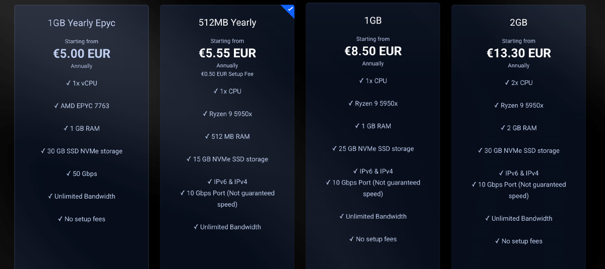 - 性价比:高(年付 5€,不限流量)
